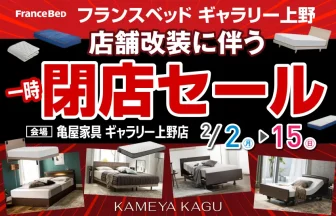 <フランスベッドギャラリー上野> 店舗改装に伴う 一時閉店セール