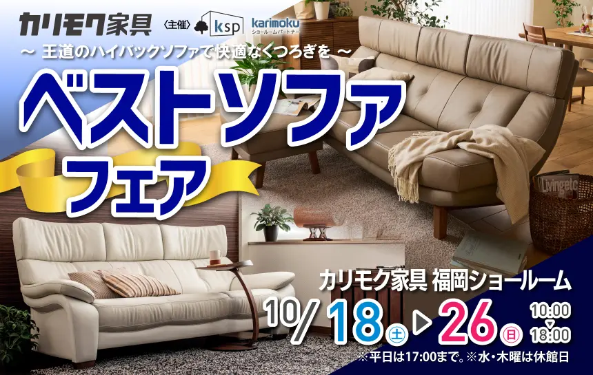 座り心地にこだわったソファの数々!期間限定の特別な御見積り!カリモク家具福岡ショールームへお越しください!