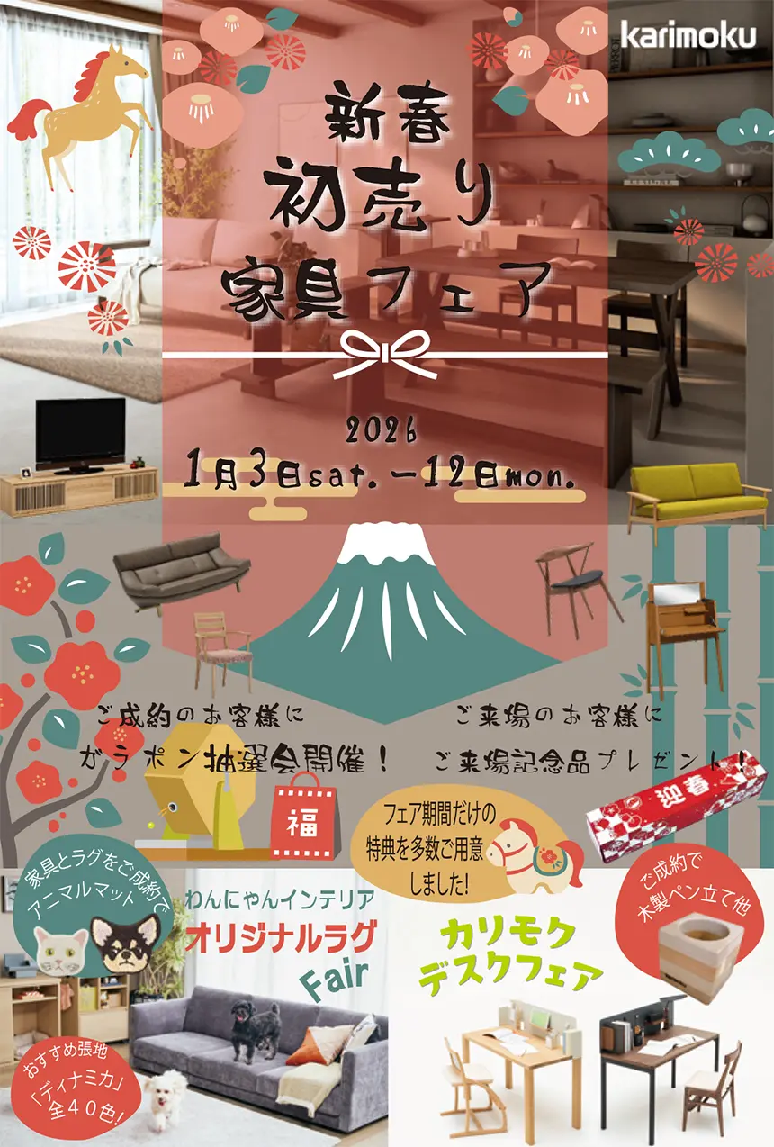 「新春初売り家具フェア」では、様々なイベントや特典をご用意いたしました。