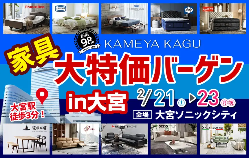 創業約100年の老舗家具屋 亀屋家具が「家具 大特価バーゲン」を開催!!!