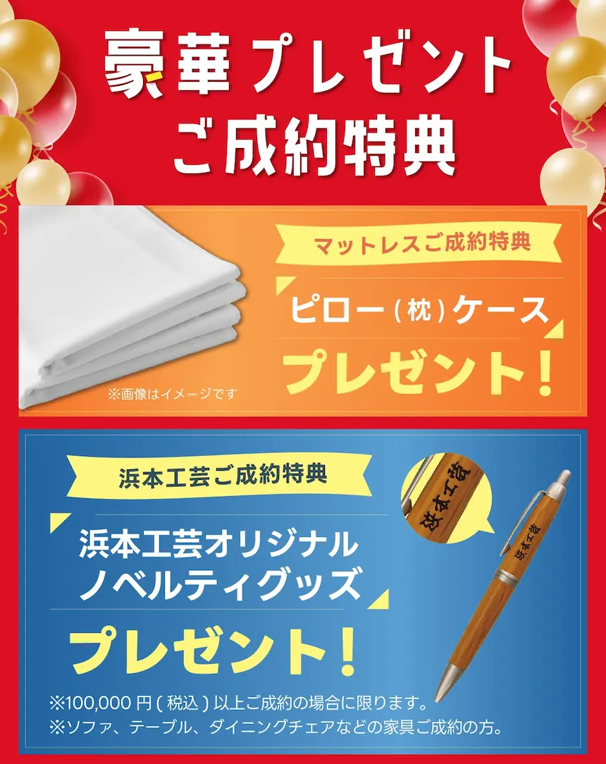 浜本工芸のソファ、テーブル、ダイニングチェアなどの家具ご成約で「浜本工芸オリジナルのノベルティグッズ」プレゼント!
