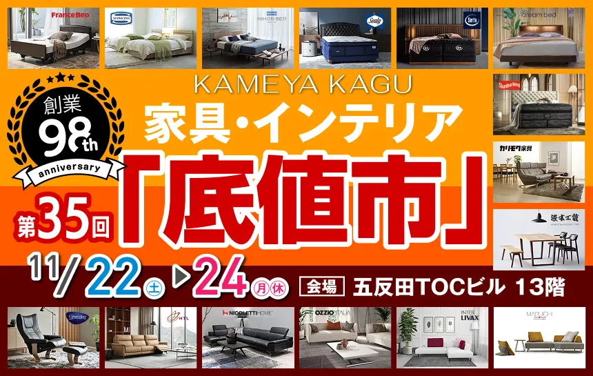 創業約100年の老舗家具屋 亀屋家具が家具のスーパーセール『第35回 家具インテリア「底値市」』を開催!!!