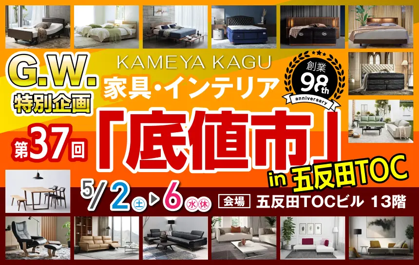創業約100年の老舗家具屋 亀屋家具が家具のスーパーセール『第37回 家具インテリア「底値市」』を開催!!!